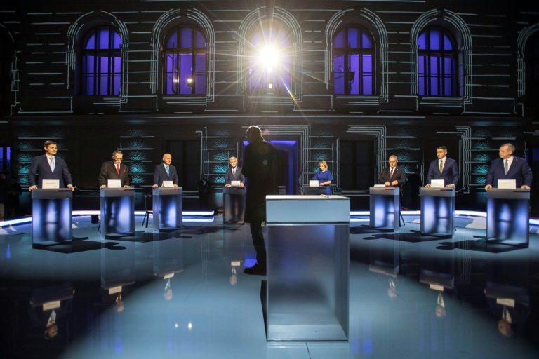 Candidates in the Czech presidential elections take part in TV debate in Prague./AFP