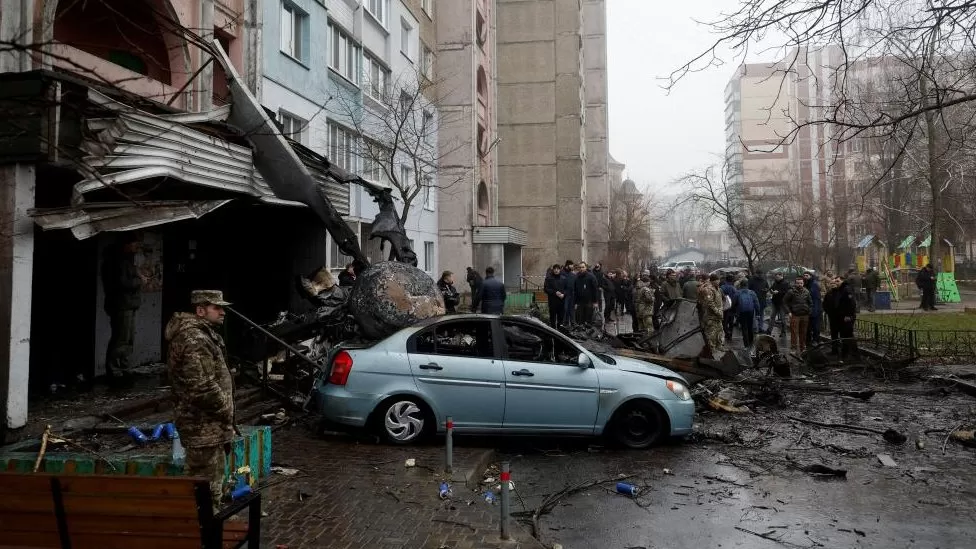 The three main figures in Ukraine’s interior ministry have been killed in a helicopter crash beside a nursery in an eastern suburb of the capital Kyiv.