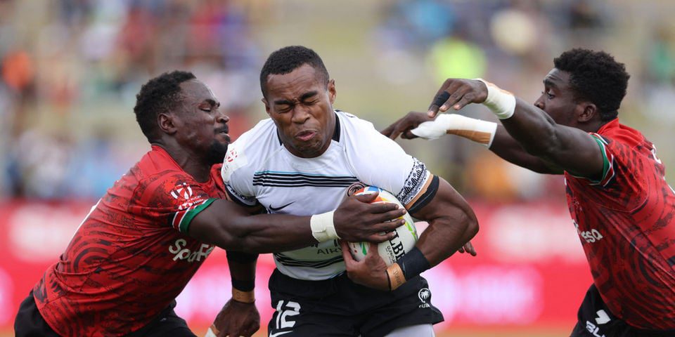 Fiji’s Vuiviwa Naduvalo is tackled during the mens match between Fiji and Kenya during day one of the World Rugby Sevens series at FMG Stadium in Hamilton on January 21, 2023./Courtesy