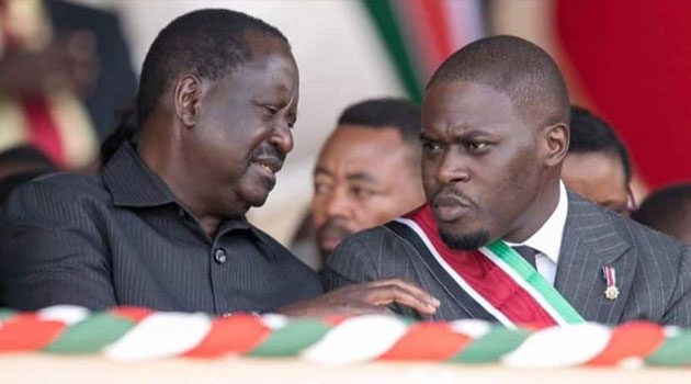 Nairobi Governor Johnson Sakaja (right) with Azimio leader Raila Odinga (left)/File/Courtesy