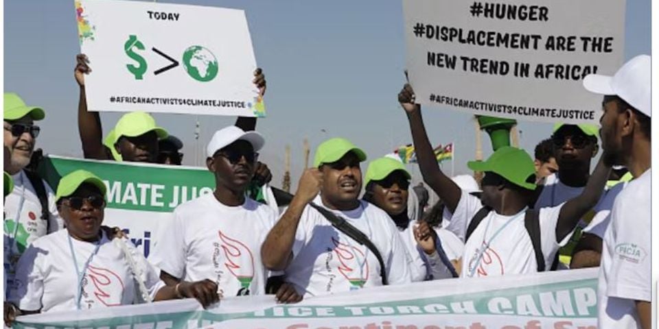 Activists press for climate change financing during COP27 conference at Sharm el-Sheikh in Egypt./Courtesy