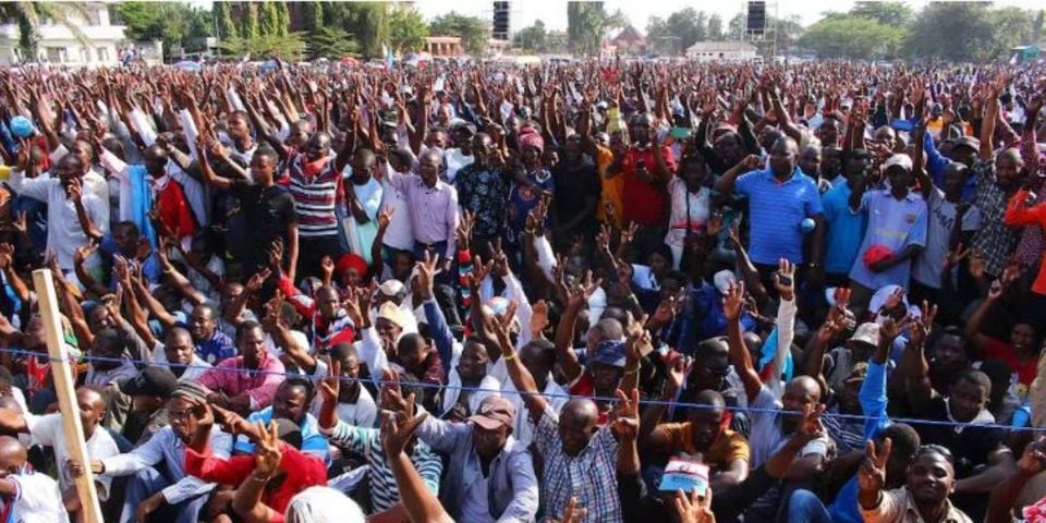 Supporters of Tanzania’s main opposition party Chadema wave during a rally in Mwanza./Courtesy