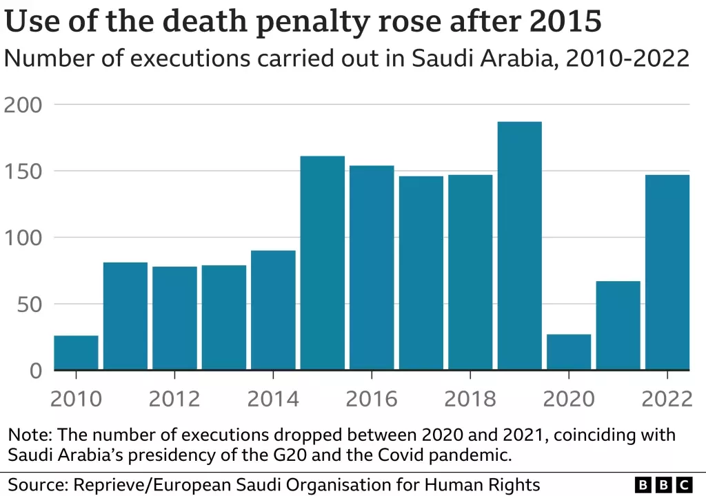 But, nearly five years on, Saudi Arabia remains one of the world’s most prolific executioners – despite a lull that coincided with Saudi Arabia’s presidency of the G20 and the start of the Covid pandemic.