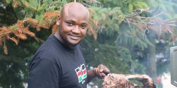 A photo of Kenyan chef John Mulwa preparing roasted meat in Canada./Courtesy