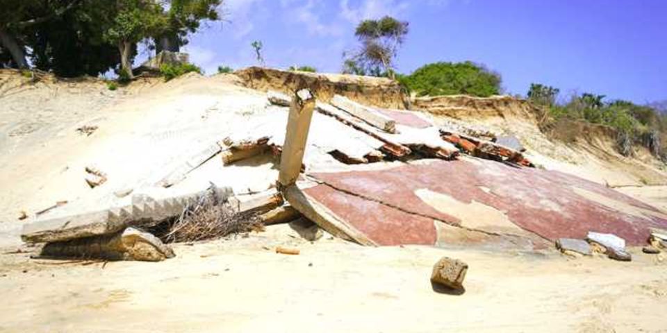 Some of the debris left behind after a large section of the Tana River Lodge and Hotel in Kipini village, Tana River County, was swallowed by the Indian Ocean./Courtesy