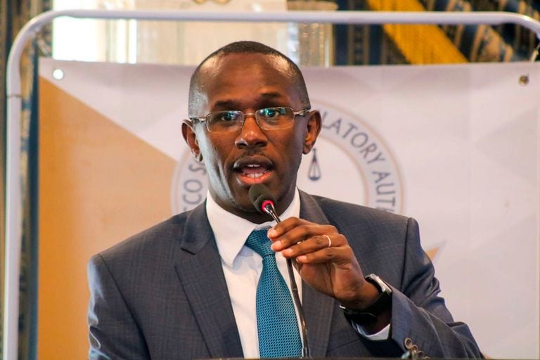 CEO of the SACCO Societies Regulatory Authority (SASRA) Peter Njuguna speaks during the SACCO Central(Shared Services) annual delegates' meeting on 15 April, 2023, at Sarova Stanley./Photo Courtesy