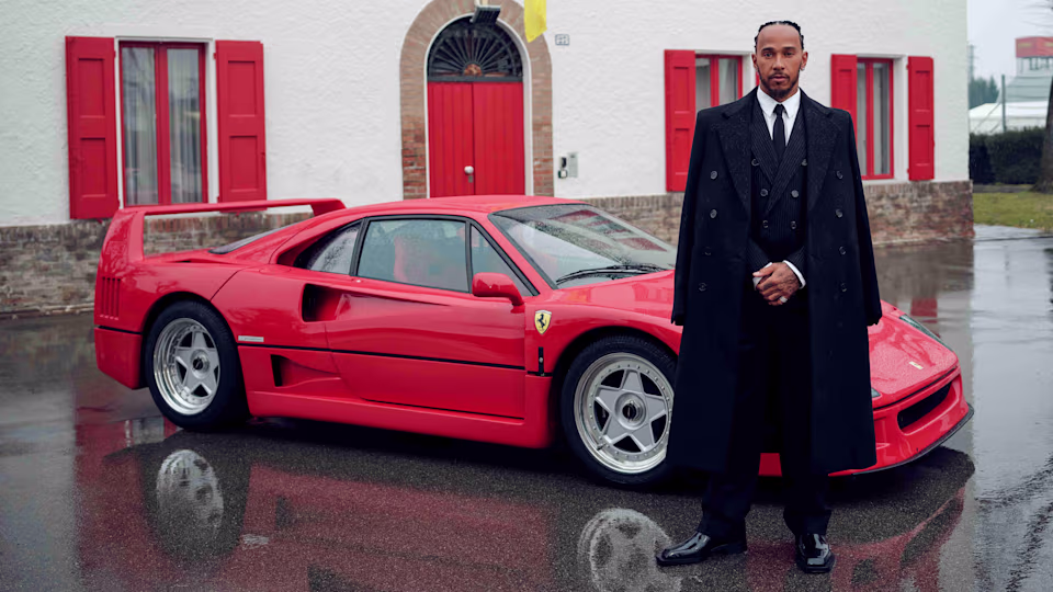 On Monday, Hamilton went a step further by posting another update on his social media channels that included a photo of him posing outside Ferrari team buildings in an all-black suit and alongside an F40 sports car.
