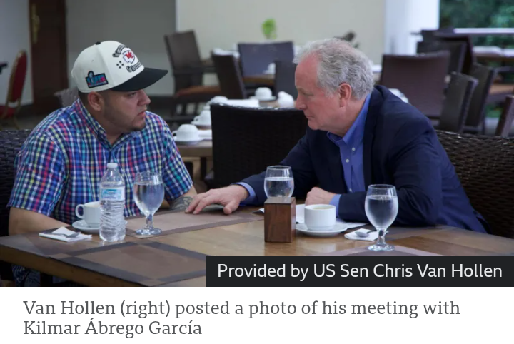 Maryland Senator Chris Van Hollen posted photos with Kilmar Ábrego García, as the administration continues to resist his return to the US despite yet another court ruling against the government on Thursday.