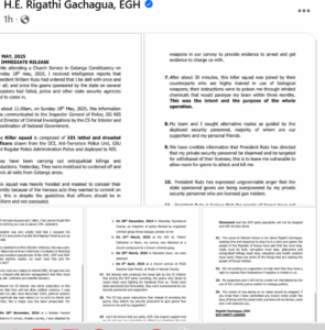 In October 2024, Gachagua made shocking claims linking the NIS to an attempt to assassinate him on two occasions.