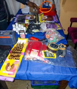 “Among the items recovered were twenty single shoes of different sizes, believed to have been taken from a Bata shop, seven packs of hair braids suspected to be from Bestlady Cosmetics, six pairs of socks, seven bulb holders, one sealing tape branded ‘Bestlady Cosmetics Ltd’, two pieces of sewing thread and two computer power cables,” the statement read.