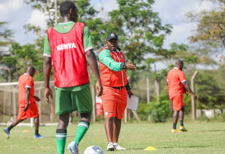 Kenya U17 head coach William Muluya gives instructions during a training session ahead of the CECAFA AFCON Qualifiers in Ethiopia. PHOTO/@Football_Kenya/X